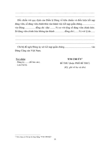 1 . Nơi chưa có Chi ủy thi thay bằng “T/M CHI BỘ”.