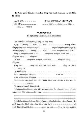 10. Nghị quyết đề nghị công nhận đảng viên chính thức của chi bộ (Mẫu