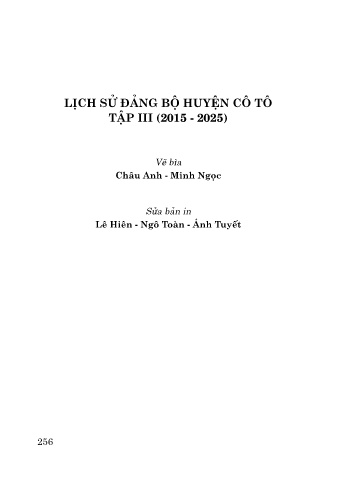 LỊCH SỬ ĐẢNG BỘ HUYỆN CÔ TÔ TẬP III (2015 - 2025) Vẽ bìa Châu Anh - Minh Ngọc Sửa bản in Lê Hiên - Ngô Toàn - Ánh Tuyết 256