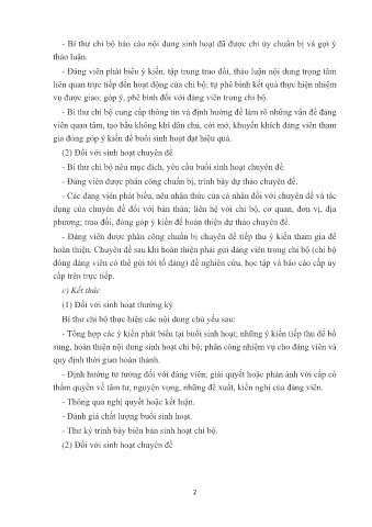 - Bí thư chi bộ báo cáo nội dung sinh hoạt đã được chi ủy chuẩn bị và gợi ý