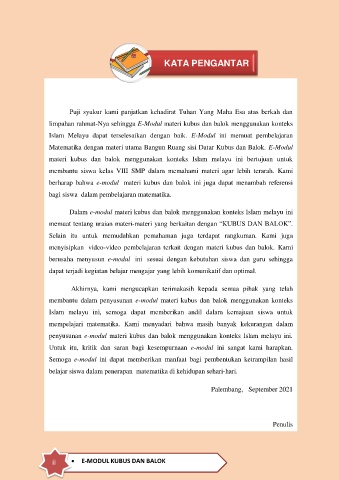limpahan rahmat-Nya sehingga E-Modul materi kubus dan balok menggunakan konteks