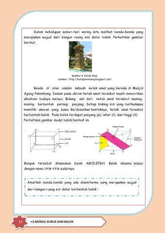 berbentuk balok. Pada balok terdapat panjang (p), lebar (l), dan tinggi (t).