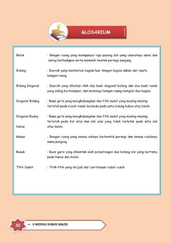 Balok : Bangun ruang yang mempunyai tiga pasang sisi yang ukurannya sama dan
