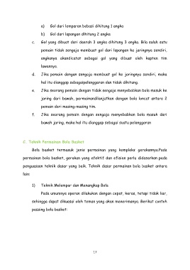 a) Gol dari lemparan bebasi dihitung 1 angka