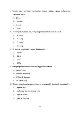 7. Jumlah pemain dalam satu tim pada permainan bola basket adalah....