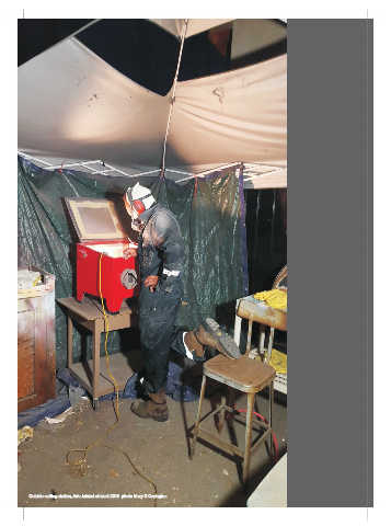 Outside cutting station, Adu Jahmal at work 2015 photo Mary D Covington