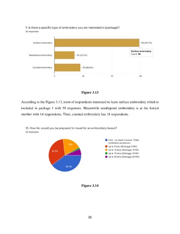 According to the Figure 3.13, most of respondents interested to learn surface embroidery which is