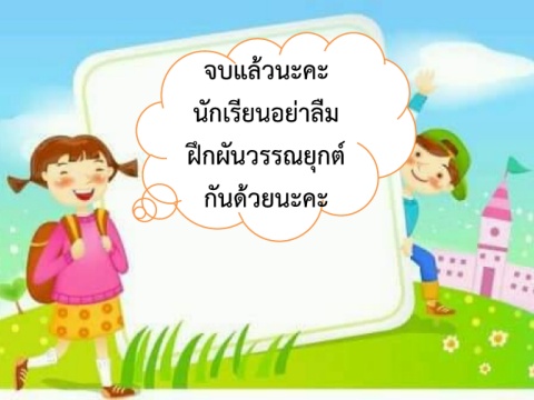 จบแล้วนะคะ นักเรียนอย่าลืม ฝึกผันวรรณยุกต์ กันด้วยนะคะ