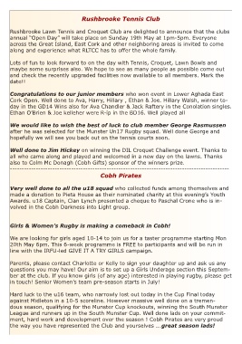 Rushbrooke Lawn Tennis and Croquet Club are delighted to announce that the clubs