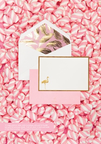 10 single premium white cards & envelopes with gold foil border and gold foil embossed details. Gold foil detail on back and inside of hand lined envelope. All packaged in keepsake box.