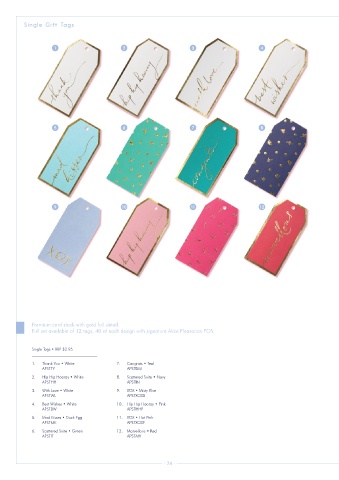 Full set available of 12 tags, 40 of each design with signature Alice Pleasance POS.
