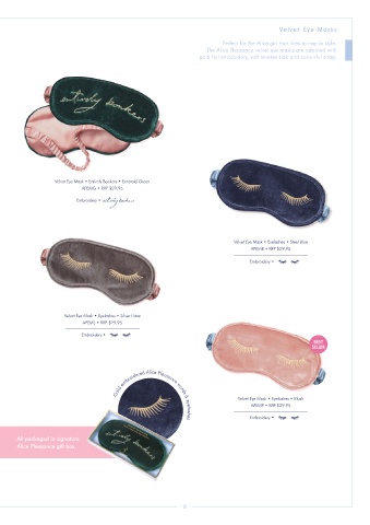 The Alice Pleasance velvet eye masks are adorned with