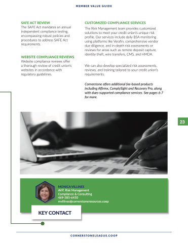 Cornerstone offers additional fee-based products including Affirmx, ComplySight and Recovery Pro, along with dues-supported compliance services. See pages 6-7 for more.