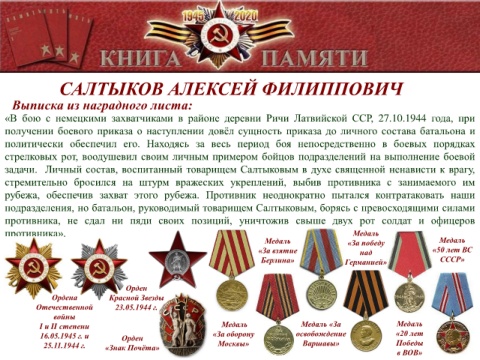 Выписка из наградного листа: