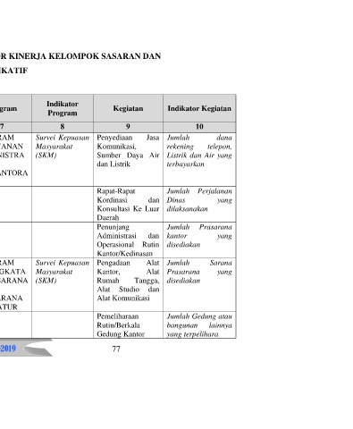 RENCANA PROGRAM DAN KEGIATAN, INDIKATOR KINERJA KELOMPOK SASARAN DAN