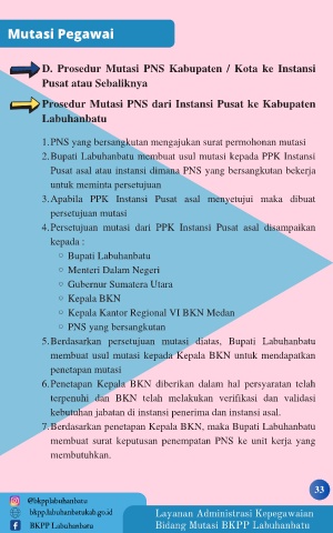 D. Prosedur Mutasi PNS Kabupaten / Kota ke Instansi