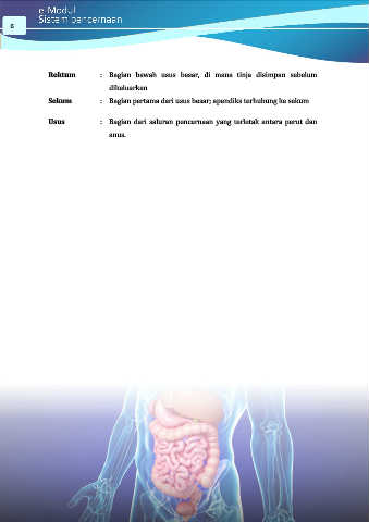 Rektum           :  Bagian  bawah  usus  besar,  di  mana  tinja  disimpan  sebelum