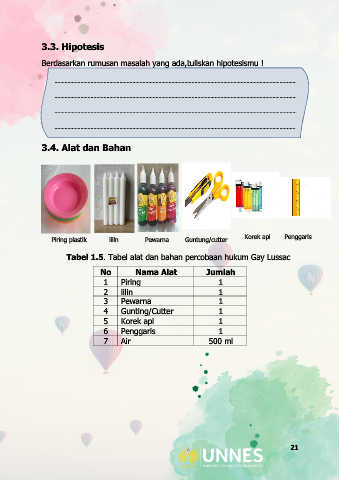 Tabel 1.5. Tabel alat dan bahan percobaan hukum Gay Lussac