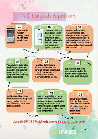 Ukurlah suhu                       Tentukan letak titik     Ukurlah volume botol
