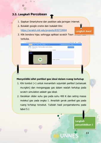 3. Klik bendera hijau sehingga aplikasi scratch Teori Kinetik Gas