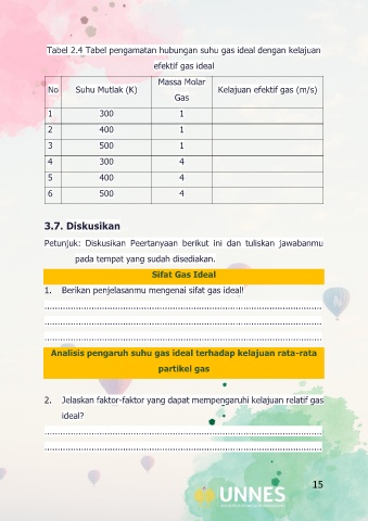 Tabel 2.4 Tabel pengamatan hubungan suhu gas ideal dengan kelajuan