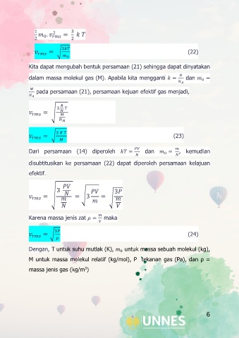 dalam massa molekul gas (M). Apabila kita mengganti = dan =
