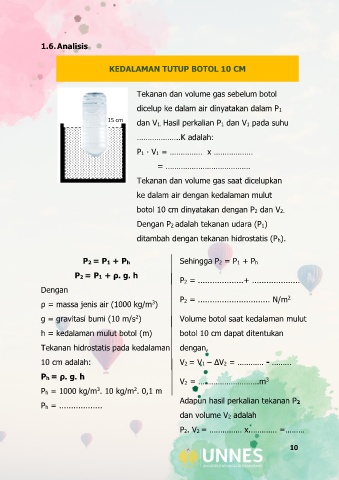g = gravitasi bumi (10 m/s ) Volume botol saat kedalaman mulut