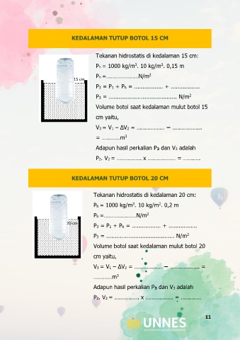 Volume botol saat kedalaman mulut botol 15