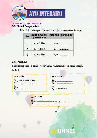 Tabel 1.6. Hubungan tekanan dan suhu pada volume konstan