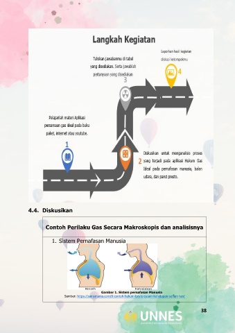 4.4. Diskusikan Contoh Perilaku Gas Secara Makroskopis dan analisisnya 1. Sistem Pernafasan Manusia C Gambar 1. Sistem pernafasan Manusia Sumber: https://sainsmania.com/8-contoh-hukum-boyle-dalam-kehidupan-sehari-hari/ 38