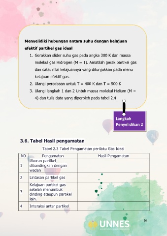 Tabel 2.3 Tabel Pengamatan perilaku Gas Ideal