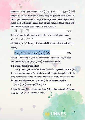 Dari resultan rata-rata kuadrat kecepatan diperoleh persamaan,
