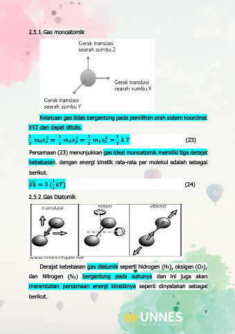 Persamaan (23) menunjukkan gas ideal monoatomik memiliki tiga derajat