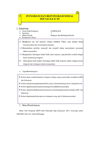 c. Materi Pokok : Integrasi dan ReintegrasiSosial