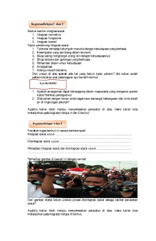 Perbedaan integrasi sosial dan disintegrasi sosial adalah …………………………….