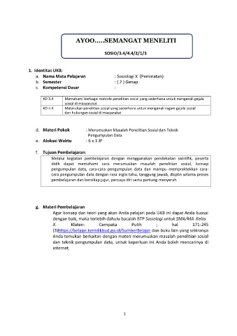 d. Materi Pokok : Merumuskan Masalah Penelitian Sosial dan Teknik