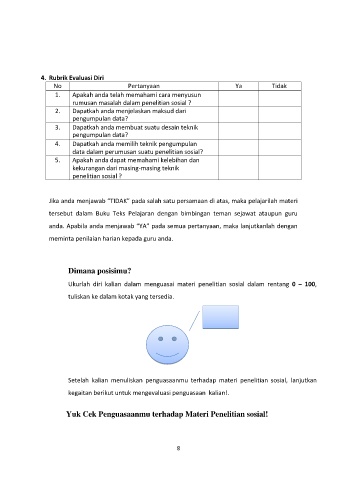 Setelah kalian menuliskan penguasaanmu terhadap materi penelitian sosial, lanjutkan