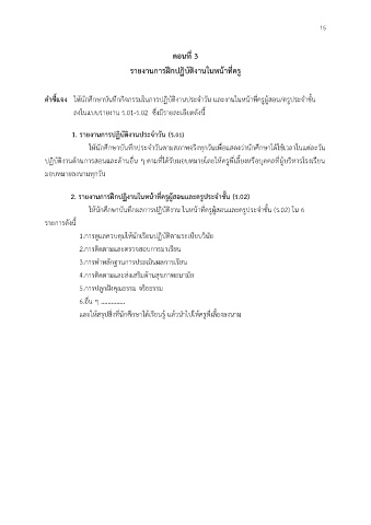 คำชี้แจง ให้นักศกษาบันทึกกิจกรรมในการปฏิบัติงานประจำวัน และงานในหน้าที่ครูผู้สอน/ครูประจำชั้น