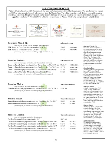 appellation includes 17 Premiers Crus Climats. The commune of Puligny-Montrachet also produces 4 Grands Crus.