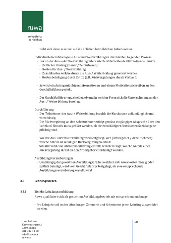 Ruwa qualifiziert sich als gesuchten Ausbildungsbetrieb mit entsprechendem Image.