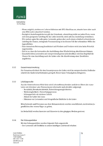 Aus der Unternehmens-Web-Seite wird Lehrstellensuchenden und deren Eltern die ruwa-
