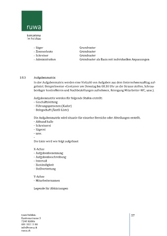 Die Aufgabenmatrix wird situativ für einzelne Bereiche oder Abteilungen erstellt.