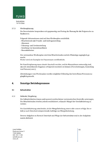 Abweichungen vom Wochenplan werden möglichst frühzeitig den betroffenen Personen zu-
