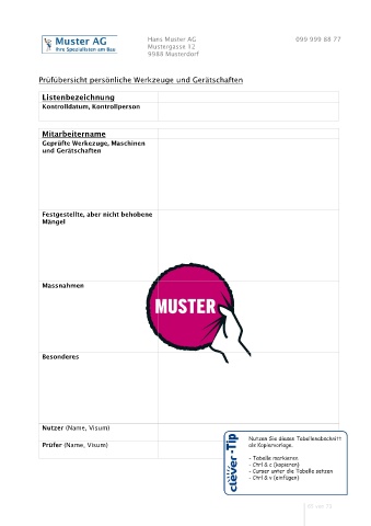 Prüfübersicht persönliche Werkzeuge und Gerätschaften