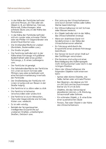 • In der Nähe der Parklücke befindet • Die Leistung des Ultraschallsensors