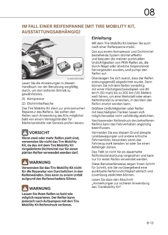 WARNUNG des Tire Mobility Kit“.