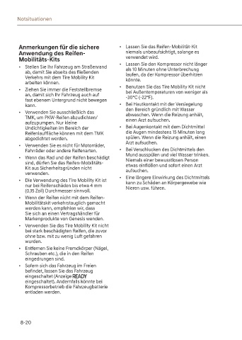 Anmerkungen für die sichere • Lassen Sie das Reifen-Mobilität-Kit