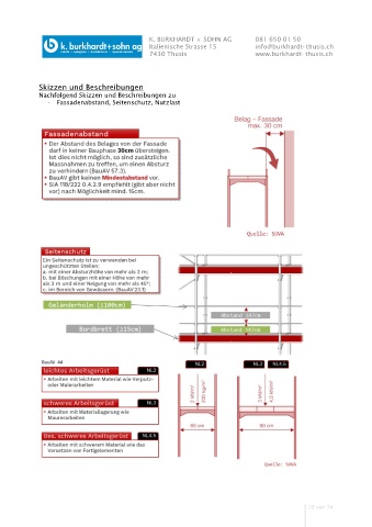 K. BURKHARDT + SOHN AG 081 650 01 50 Italienische Strasse 15 info@burkhardt-thusis.ch 7430 Thusis www.burkhardt-thusis.ch Skizzen und Beschreibungen Nachfolgend Skizzen und Beschreibungen zu - Fassadenabstand, Seitenschutz, Nutzlast 25 von 74
