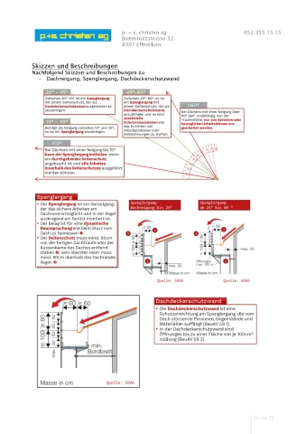 p. + s. christen ag 052 355 15 15 Bietenholzstrasse 32 8307 Effretikon Skizzen und Beschreibungen Nachfolgend Skizzen und Beschreibungen zu - Dachneigung, Spenglergang, Dachdeckerschutzwand 22 von 73
