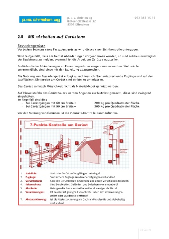 Vor der Nutzung von Gerüsten ist die 7-Punkte-Kontrolle durchzuführen.